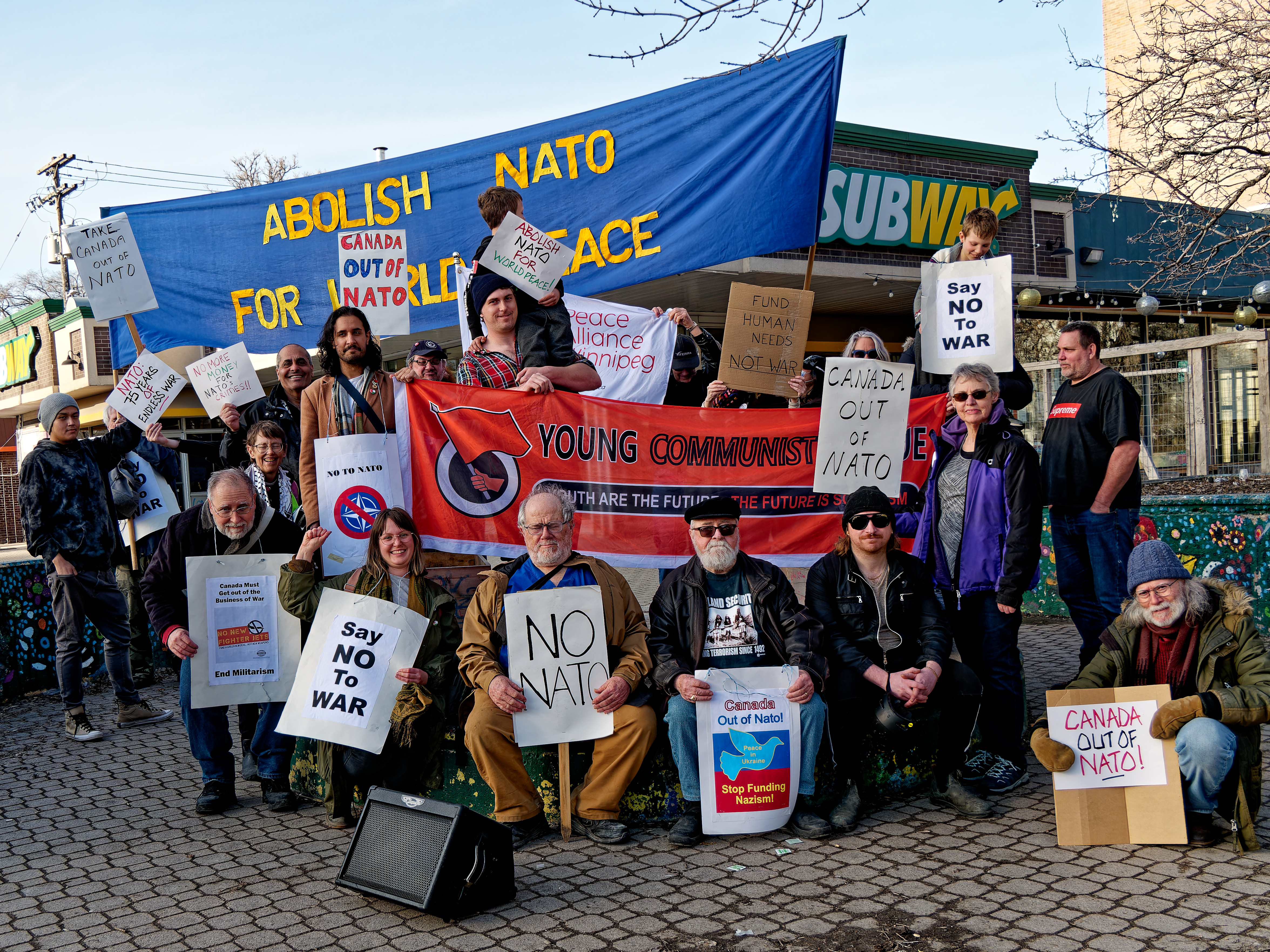 Winnipeg, April 4, 2024: Members of Peace Alliance Winnipeg marked the 75th anniversary of the founding of the North Atlantic Treaty Organization (NATO) with an information picket in the Osborne Villlage neighbourhood of Winnipeg. Following is the text of the statement they distributed.